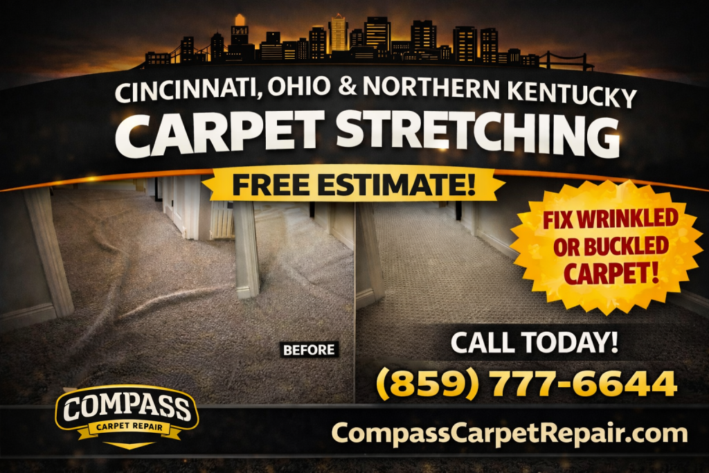 Compass Carpet Repair provides professional carpet stretching, patching, and repair throughout Cincinnati, Greater Cincinnati, and Northern Kentucky.